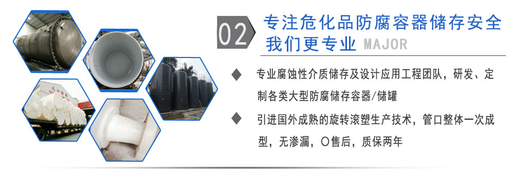 公司有鋼襯塑PE/PO、PE全塑、碳鋼、不銹鋼四大系列100多個(gè)品種,專注于常壓儲(chǔ)存容器生產(chǎn),其產(chǎn)品包括鋼襯塑儲(chǔ)罐、管口一體成型PE儲(chǔ)罐、碳鋼儲(chǔ)罐、不銹鋼儲(chǔ)罐、反應(yīng)釜、攪拌罐、離子交換柱、鋼襯PE/PO儲(chǔ)罐、塑料儲(chǔ)罐、鹽酸儲(chǔ)罐、硫酸儲(chǔ)罐等等。更大限度滿足廣大客戶的各種需求,同時(shí)可以根據(jù)客戶的需要加工定制各種防腐設(shè)備。
